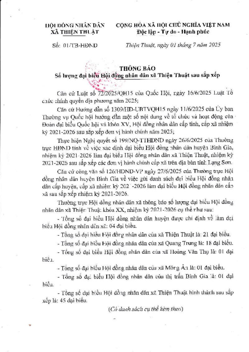| Mô tả | Thông báo số lượng Đại biểu hội đồng nhân dân xã Thiện ThuậtThông | ||