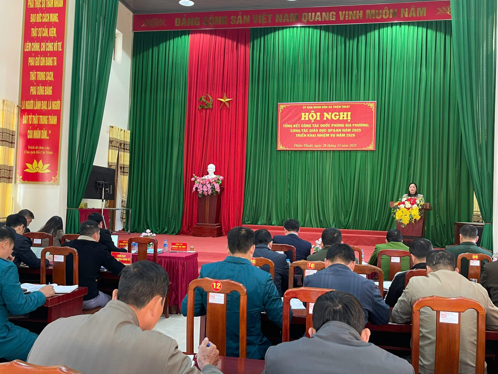 ▶️Chiều 28/11/ 2025, UBND xã Thiện Thuật đã tổ chức Hội nghị tổng kết công tác quốc phòng địa phương, Công tác giáo dục quốc phòng và an ninh năm 2025, triển khai nhiệm vụ năm 2026. Dự hội nghị có đại diện Ban Chỉ huy phòng thủ khu vực 2 - Bắc Sơn, các đồng chí trong Thường trực Đảng ủy, HĐND, UBND, UBMTTQ cùng các hội đoàn thể xã, trưởng thôn, thôn đội trưởng trên địa bàn.