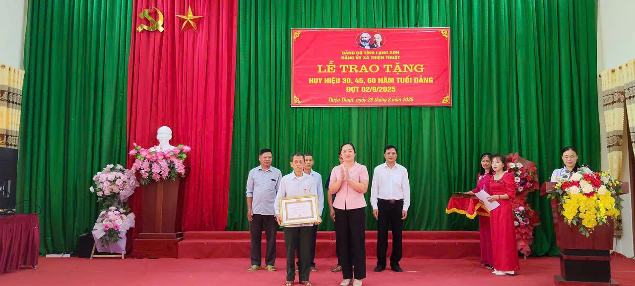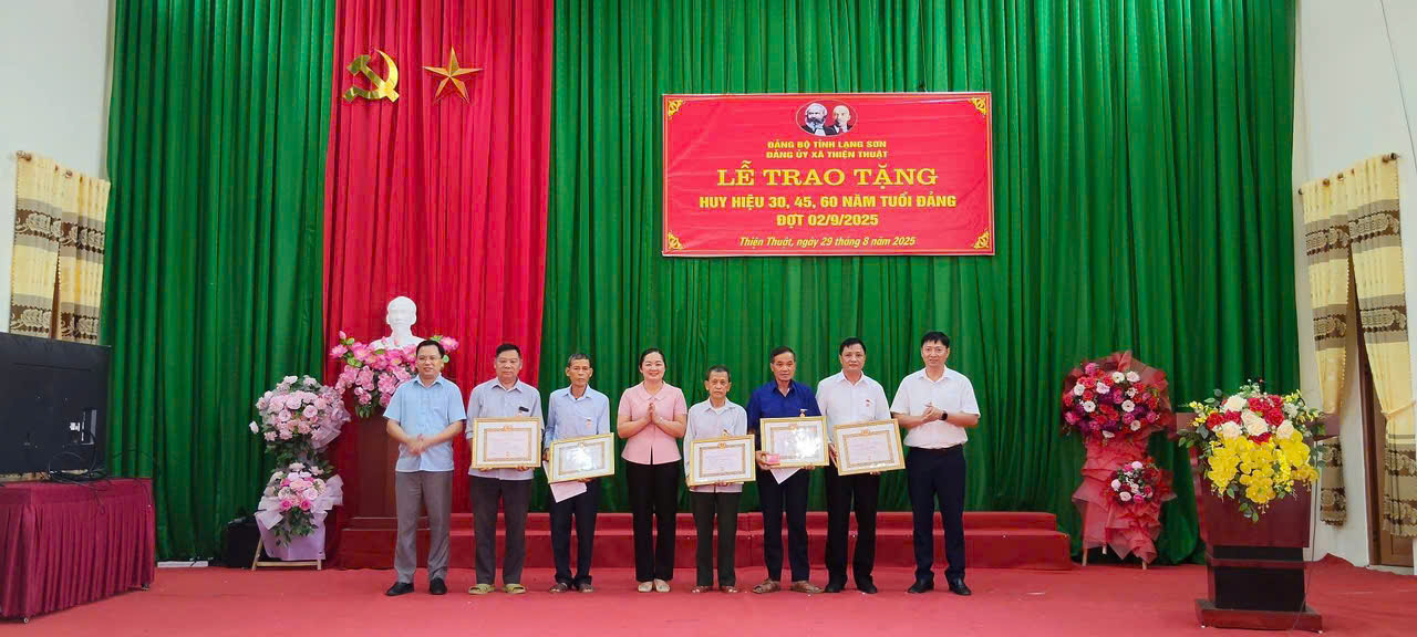 Ngày 29/8/2025, Đảng ủy xã Thiện Thuật đã long trọng tổ chức Lễ trao tặng Huy hiệu 30, 45, 60 năm tuổi Đảng đợt 2/9 cho các đảng viên tiêu biểu.