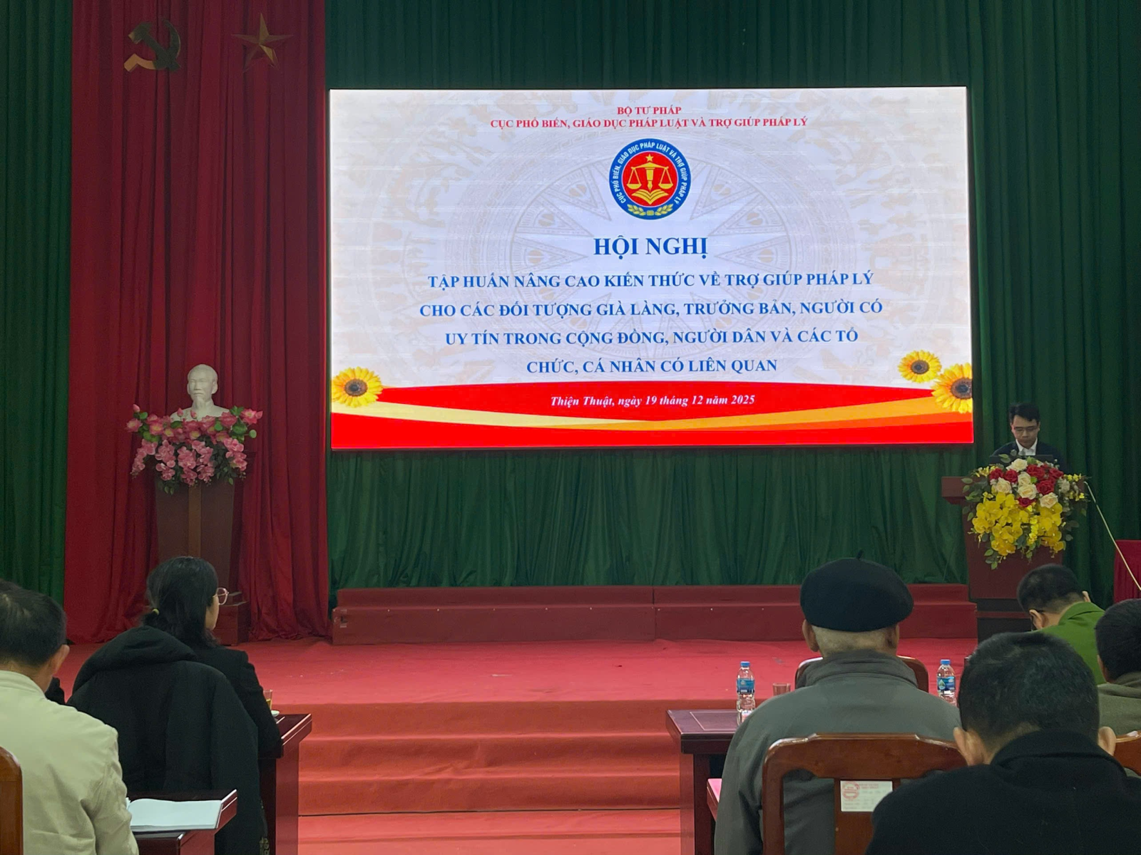 Sáng ngày 19/12/2025, Tại nhà Văn hóa xã Thiện Thuật. Uỷ ban nhân dân xã phối hợp với Trung tâm trợ giúp pháp lý tỉnh Lạng Sơn tổ chức hội nghị tập huấn nâng cao kiến thức về trợ giúp pháp lý năm 2025.